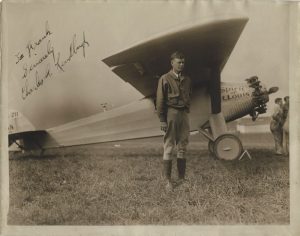 Superb signed portrait by Lindbergh with his plane